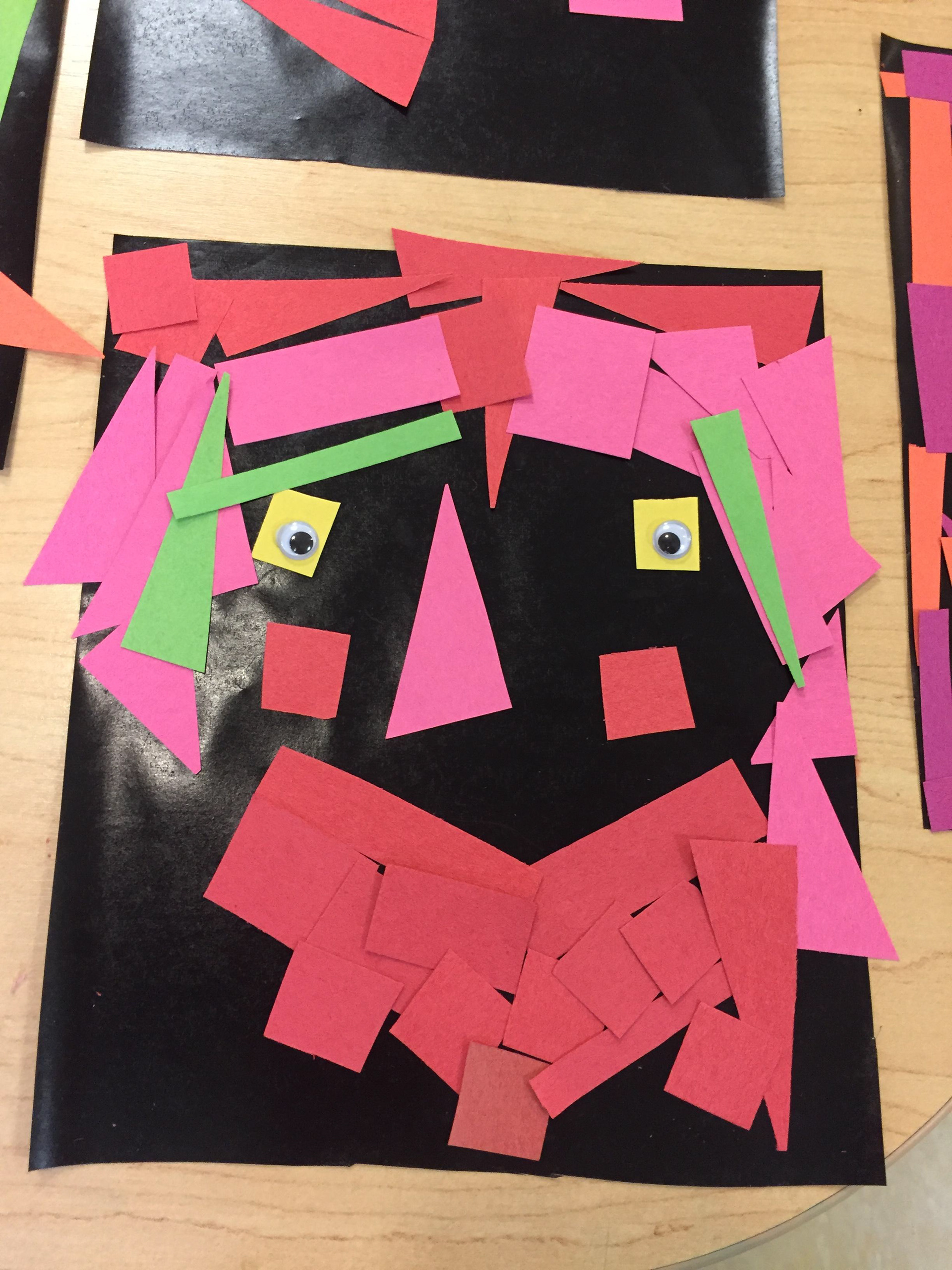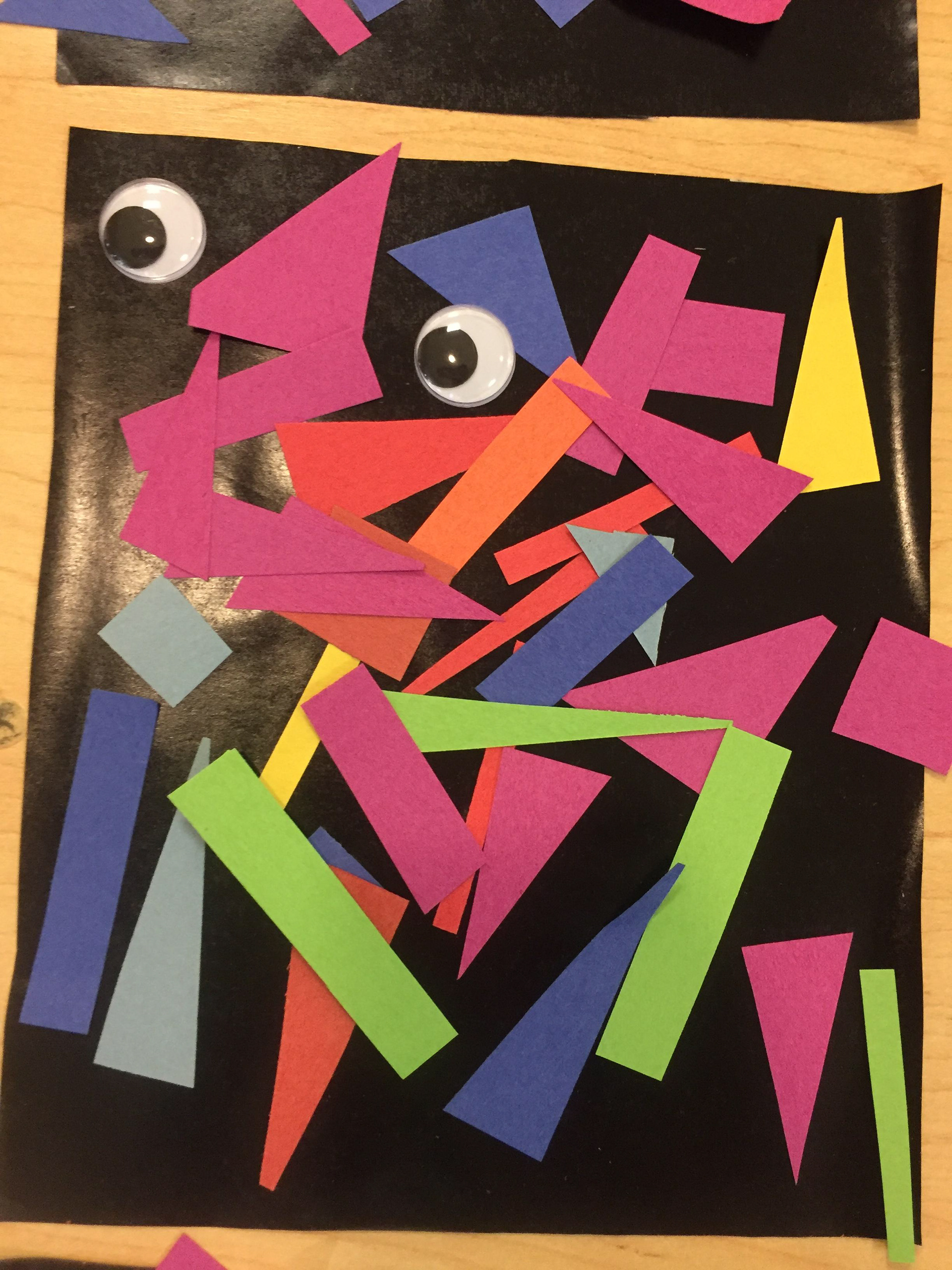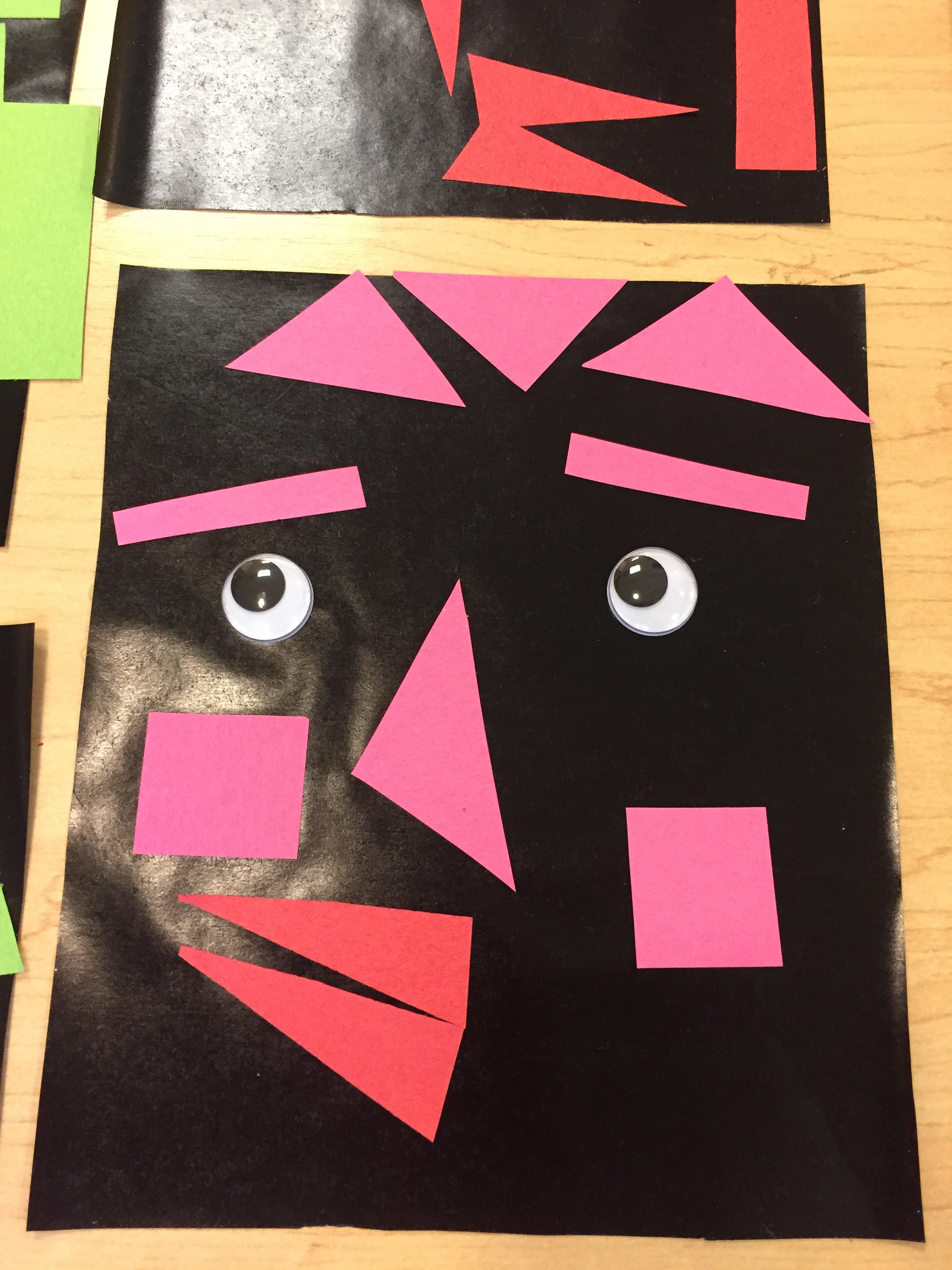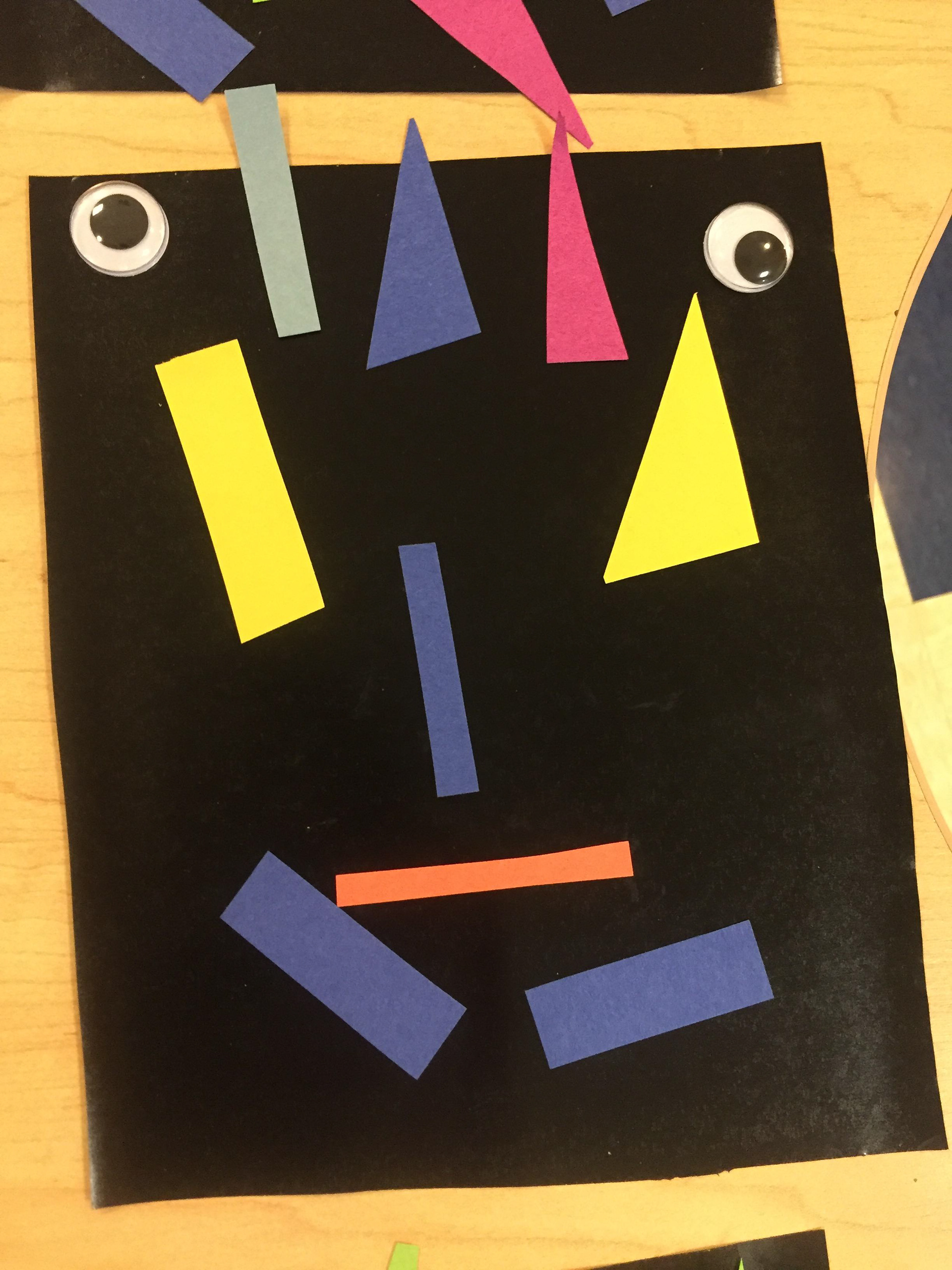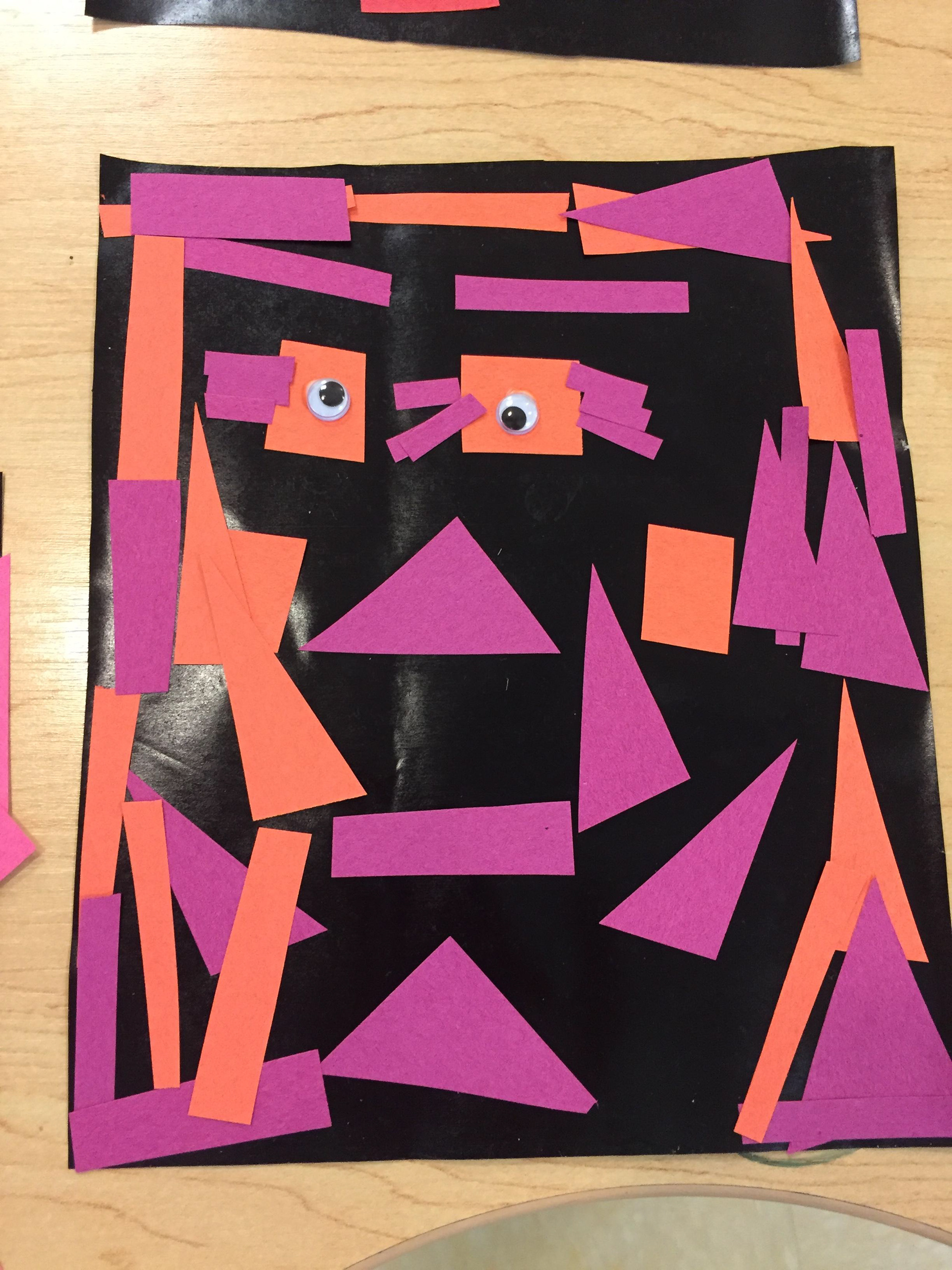 After looking over some of the portraits Picasso made throughout his life, we decided to make our own with cut paper and black contact paper. Everyone used their cut paper in different ways, and some students cut the paper themselves to have smaller and more "fitting" pieces!