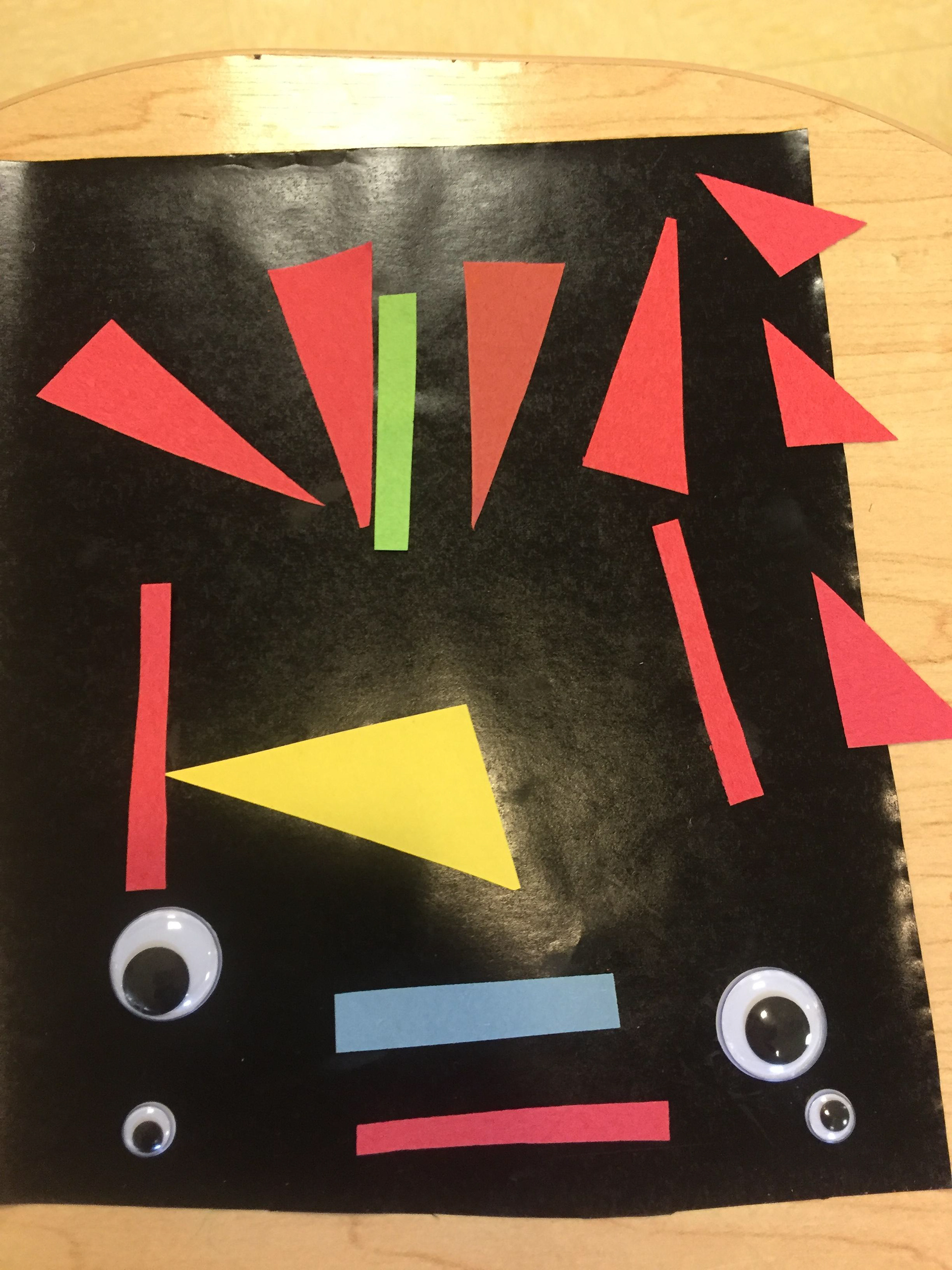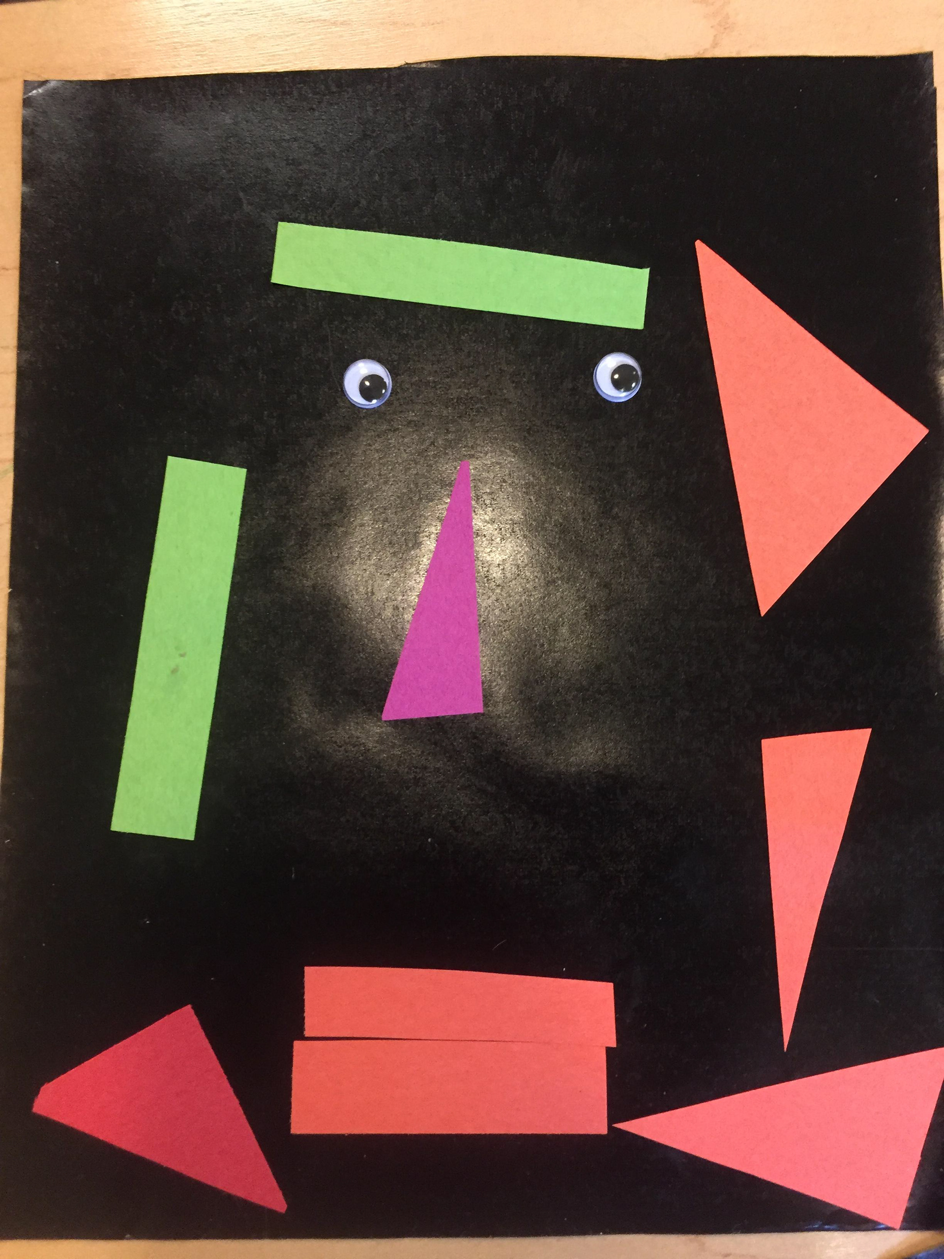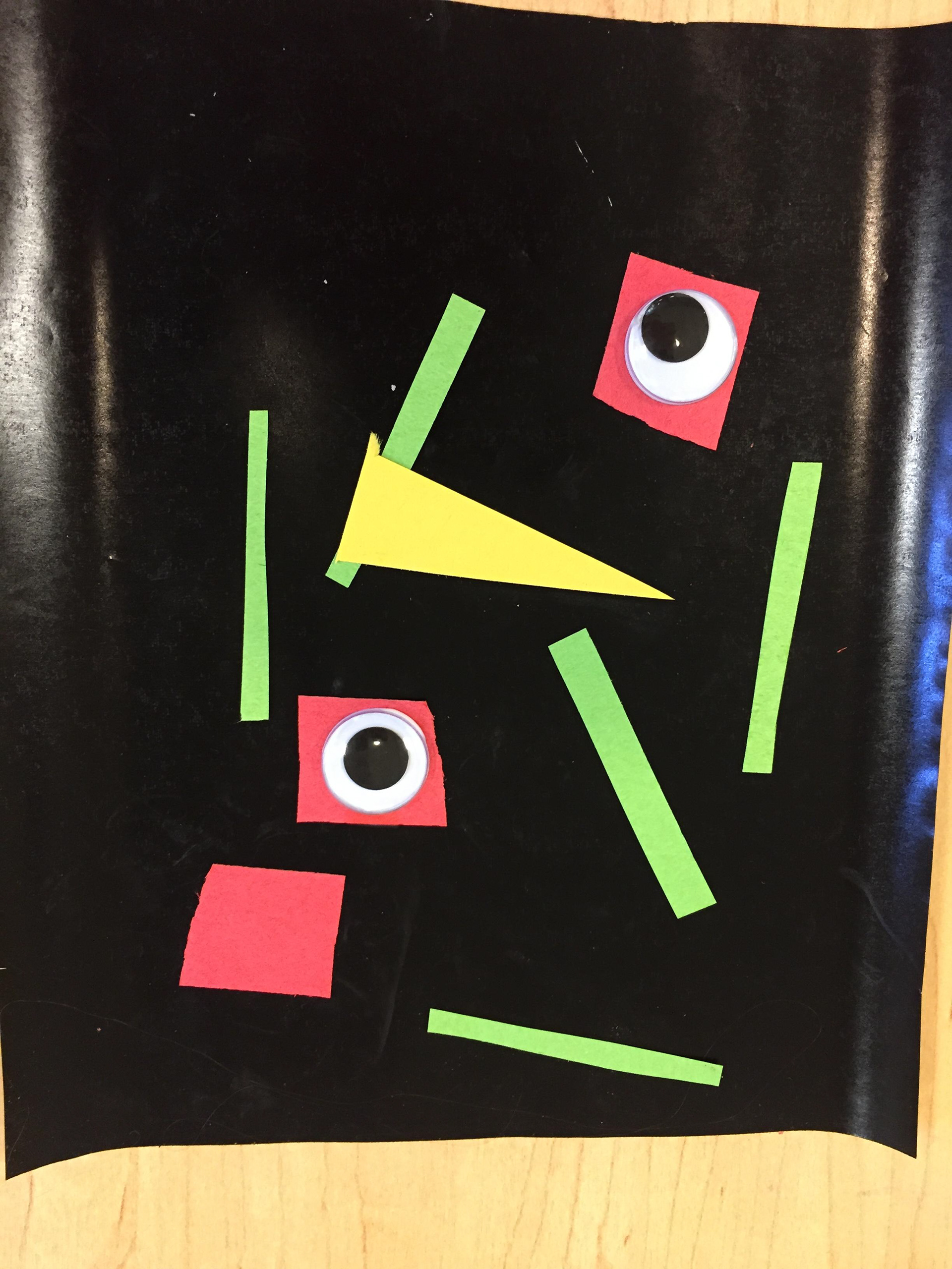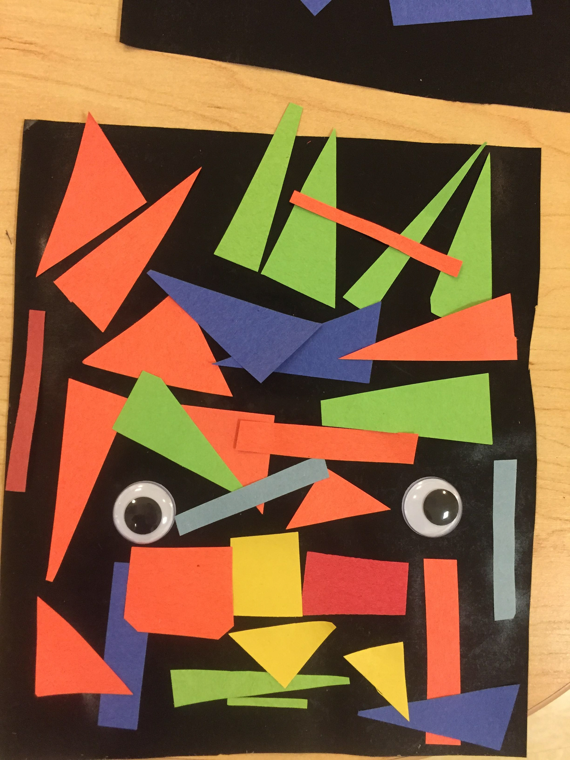 After looking over some of the portraits Picasso made throughout his life, we decided to make our own with cut paper and black contact paper. Everyone used their cut paper in different ways, and some students cut the paper themselves to have smaller and more "fitting" pieces!