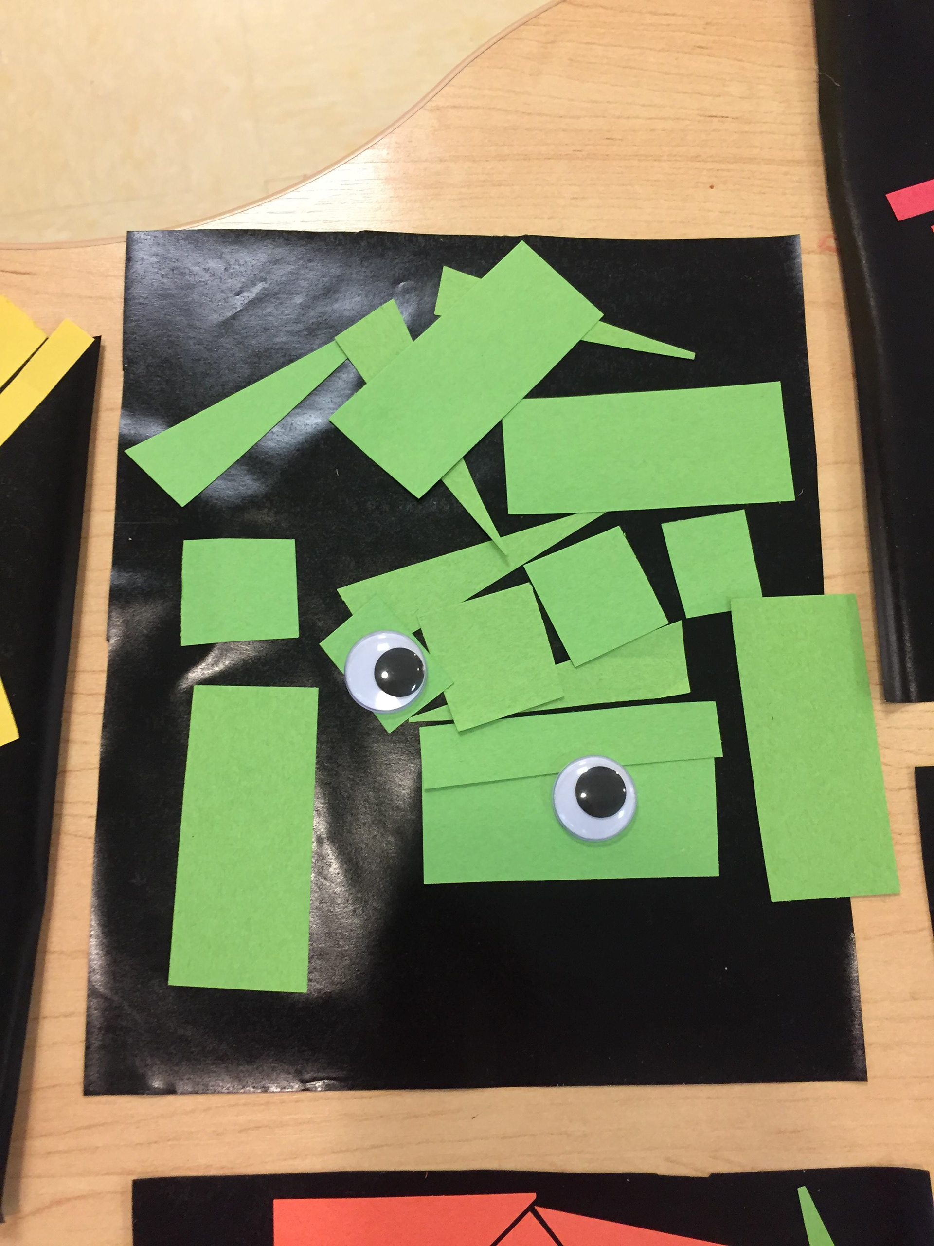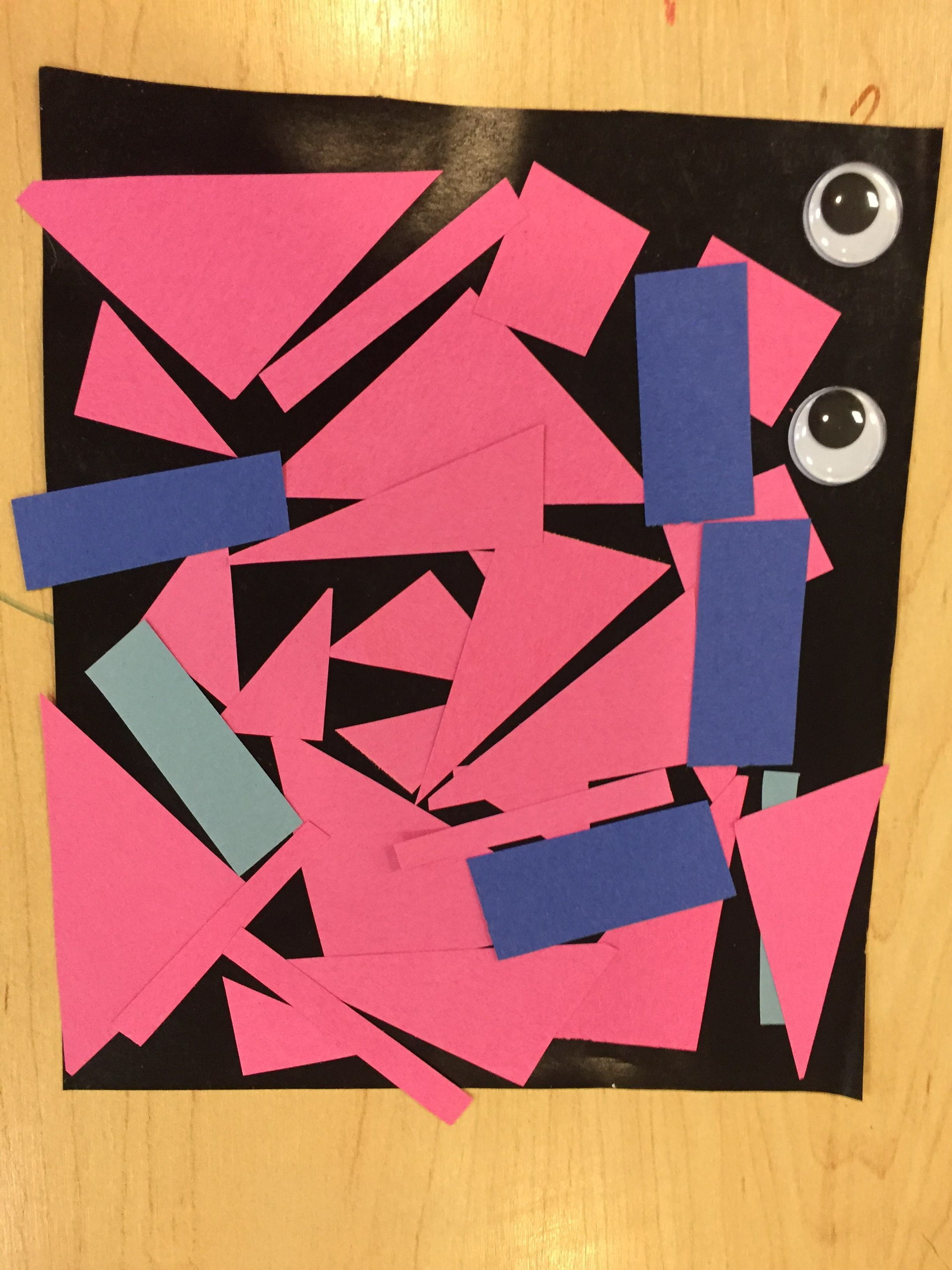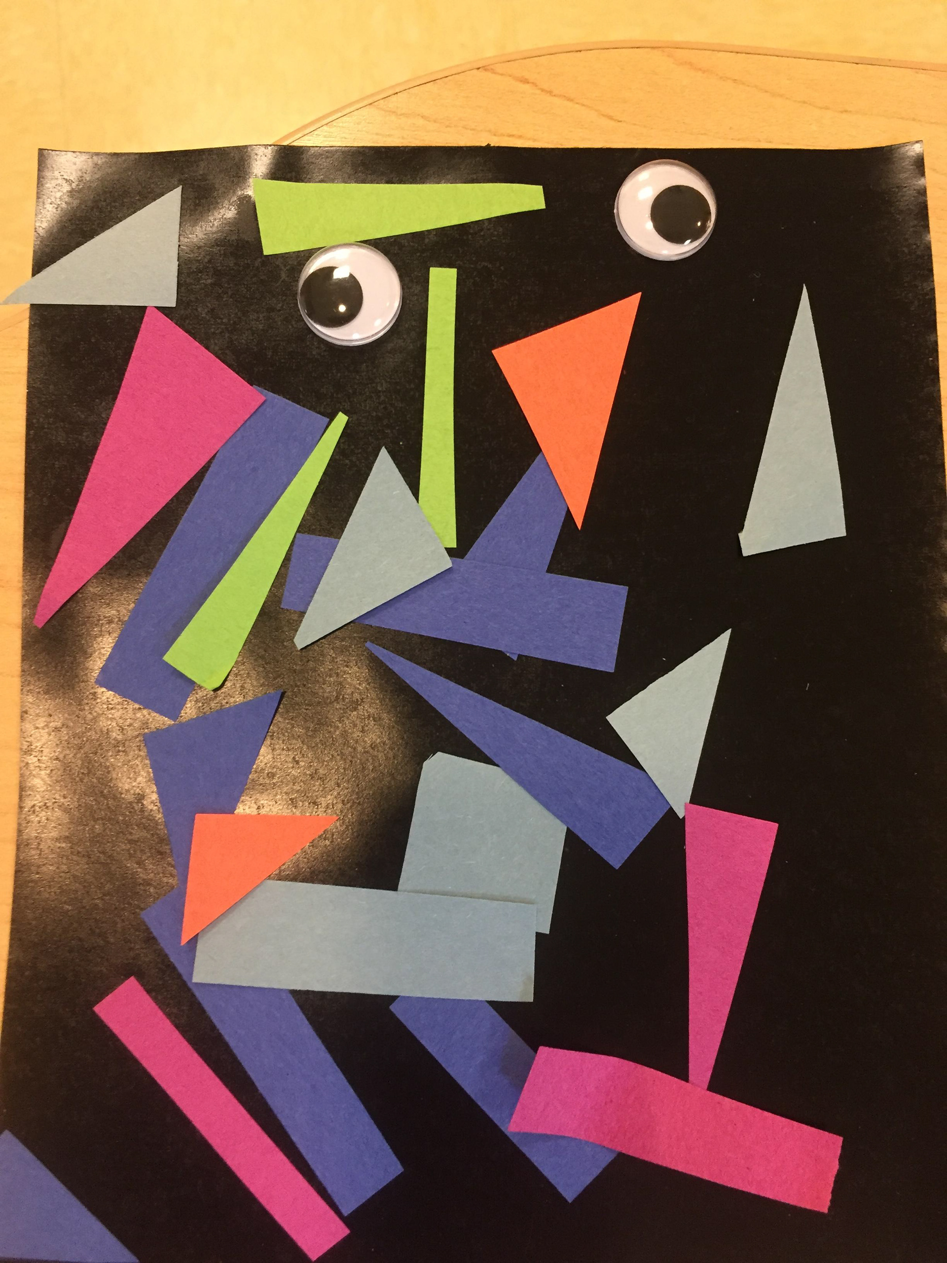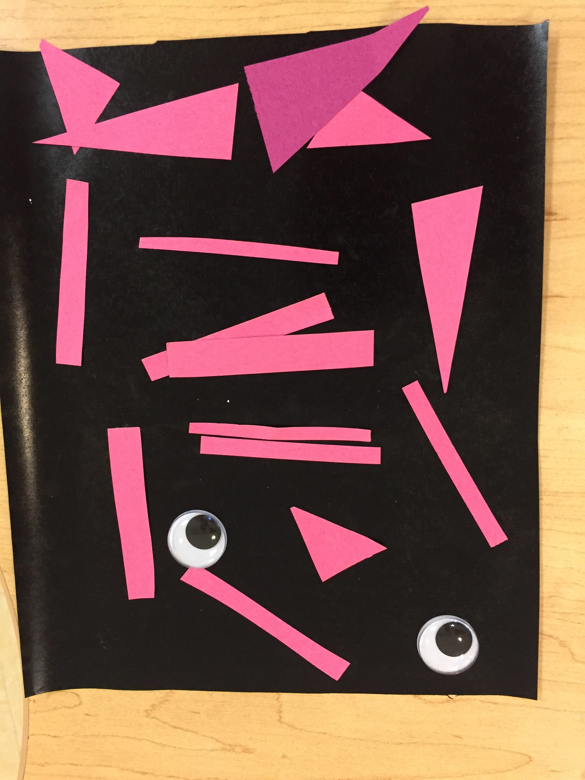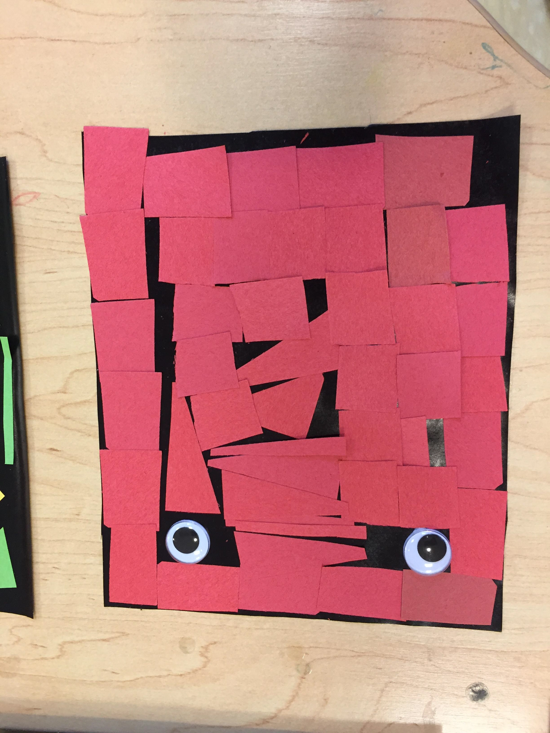 After looking over some of the portraits Picasso made throughout his life, we decided to make our own with cut paper and black contact paper. Everyone used their cut paper in different ways, and some students cut the paper themselves to have smaller and more "fitting" pieces!